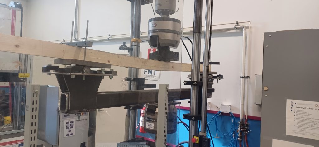 Työpajan päätteeksi tutustuttiin ELME Studioon ja hankkeessa kehitettyyn teräspuupalkin koestusdemoon.